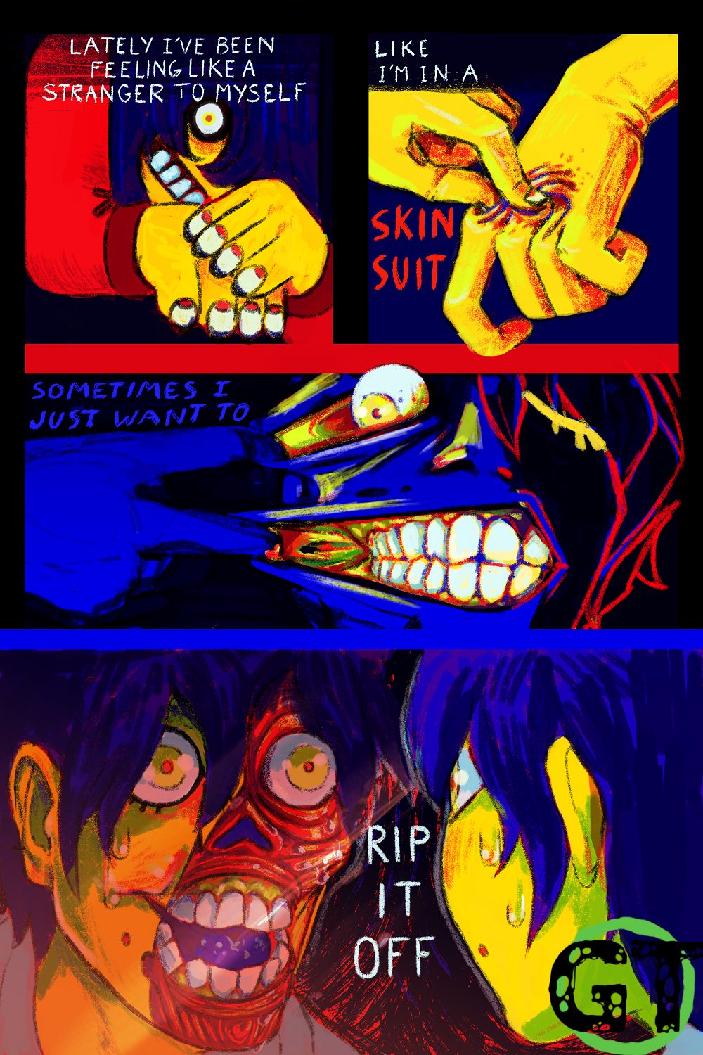 This specific piece was about a recent bout of dysphoria. When I become too shabby and my hair starts to grow out I start to fret over it to the point where my physical appearance as a whole becomes something I hate looking at. It doesn’t happen too often anymore as I’ve gotten more comfortable with myself but it comes and goes.