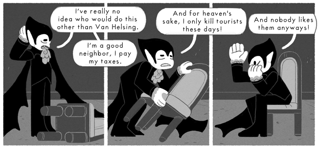N: Though Dracula does literally eat people. But not in this comic. No one gets eaten.