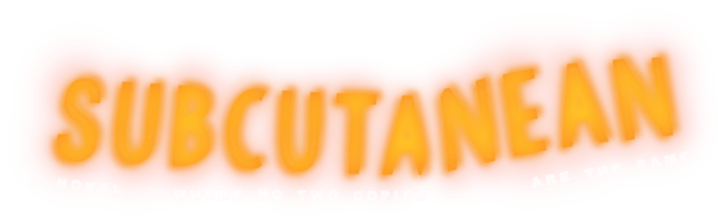 Aaron Reed: Subcutanean is a queer horror novel with a twist: there are hundreds of places where different things can happen in the story, from very subtle differences to whole scenes and plot threads that appear in some versions but not others. Each time someone orders the book, the text “regenerates” to make a unique combination of these options, typesets the new text as a book, uploads it to a print on demand service, and orders the next copy. No two copies are ever quite the same.