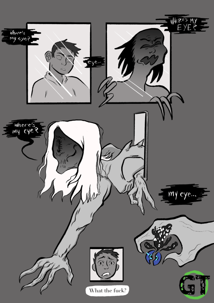 Page 6 of a comic about a peculiar evil eye bracelet! I’m Jaime Mosquera, a Latinx nonbinary comic artist and illustrator who loves body horror and birds! You can find more of my work and tip me here: