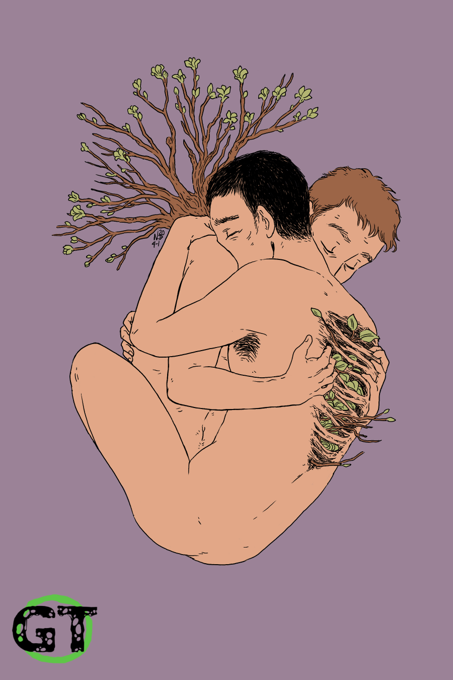 Much of my art comes from emotional experiences and places of vulnerability. I find that all too often, men don’t get the chance to express vulnerable feelings in a healthy way. As someone who identifies as androgynous most of the time (I am comfortable with she/her/they pronouns), I use my empathetic nature to illustrate vulnerable figures of all kinds, and I frequently draw men in positions of vulnerability. I think people need to see more depictions like that, so they can feel comfortable seeing themselves reflected, and changing the conversation about vulnerability to make it universal.